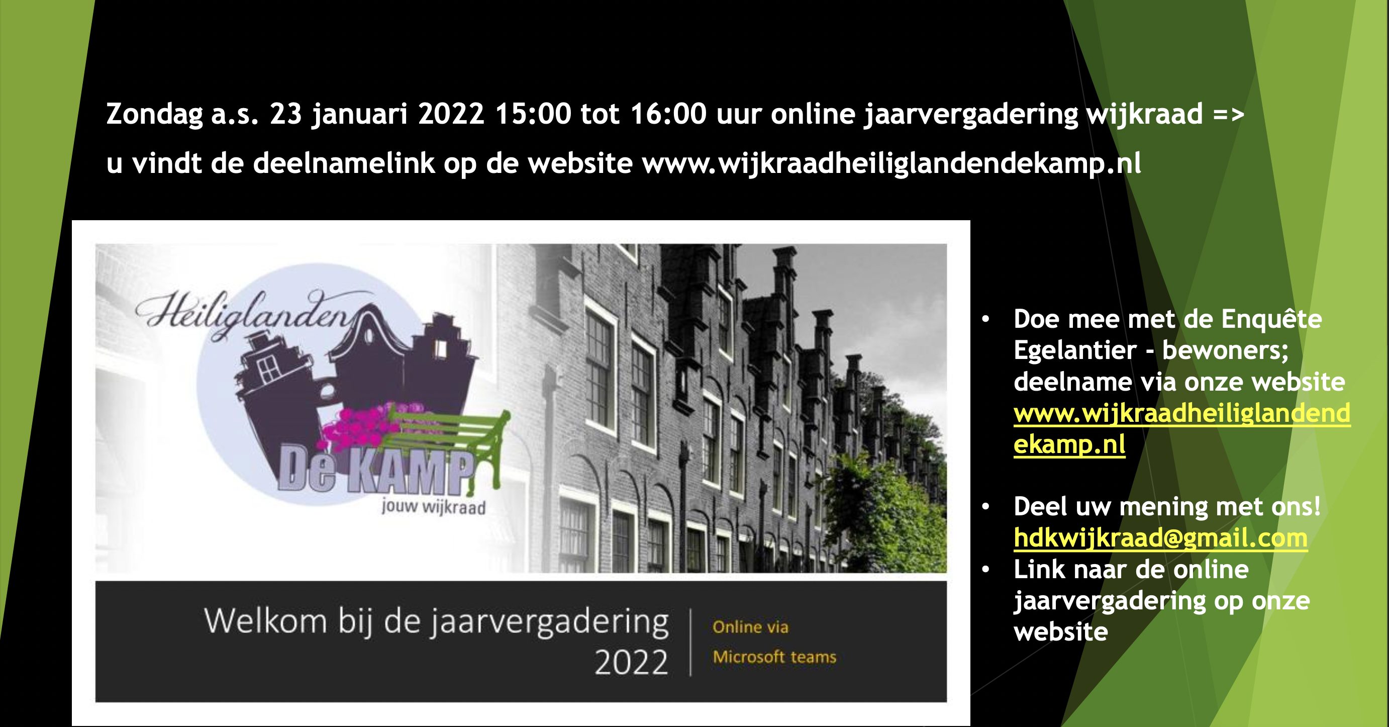 Zondag 2 februari Nieuwjaarsbijeenkomst Wijkplatform. Locatie: Frans Halsmuseum. Inloop 15:00 uur. Aanvang 15:30 uur. Einde 17:30 uur.
