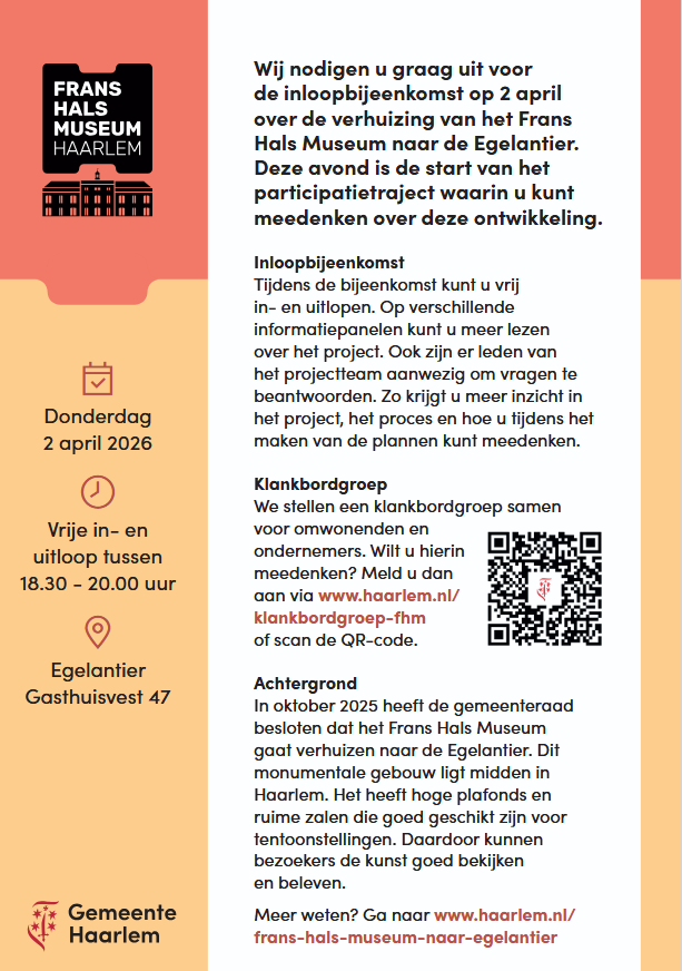 Dinsdag 10 juni 19:00 uur Informatiebijeenkomst Frans Hals Museum, Zijlpoort, Gedempte Oude Gracht 2